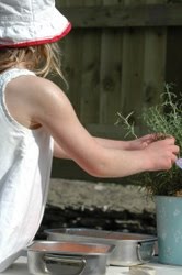 5. Weigh out 150g flour with your child into a bowl and let your child pinch in a little cinamon.